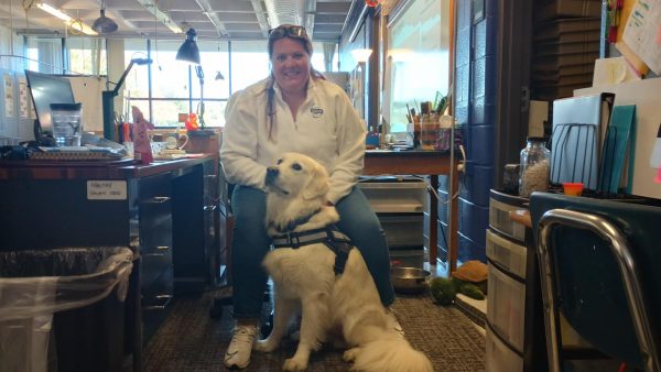 “He’s adorable. Bentley brings a calming presence and overall brings a sense of safety,” said Arlo Gabler, a Plymouth junior.